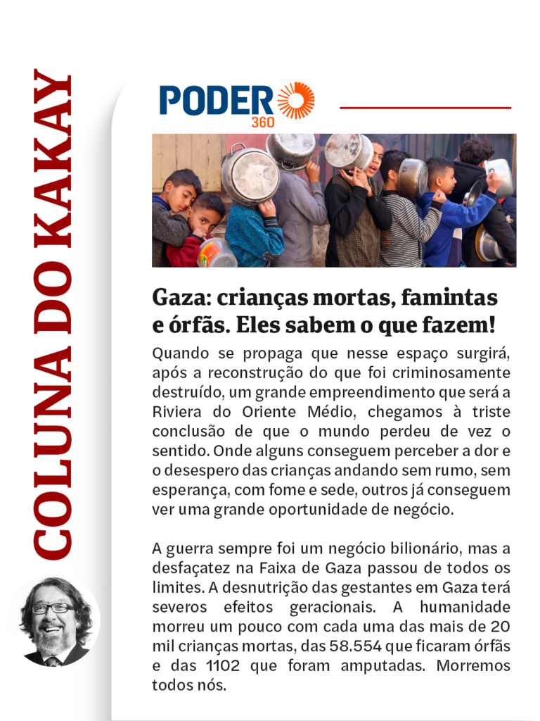 A guerra sempre foi um negócio bilionário, mas a desfaçatez na Faixa de Gaza passou de todos os limites. A desnutrição das gestantes em Gaza terá severos efeitos geracionais. A humanidade morreu um pouco com cada uma das mais de 20 mil crianças mortas, das 58.554 que ficaram órfãs e das 1102 que foram amputadas. Morremos todos nós.